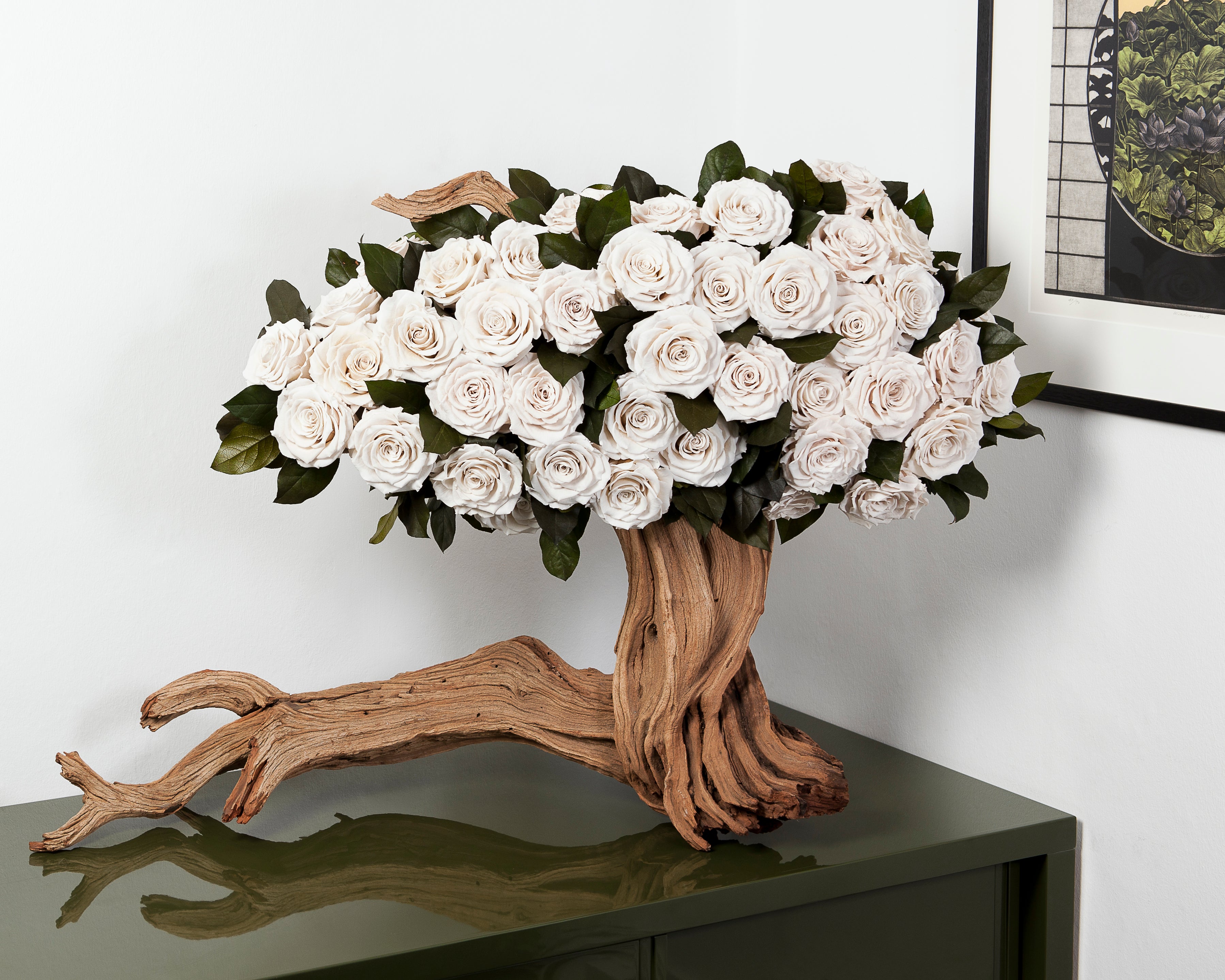 Your arrangement is meticulously composed using preserved roses that maintain their beauty for months or years.