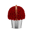 A Versatile Centrepiece in a Champagne Cooler Vase A dome of Infinite Roses arranged around a leather handle within a champagne cooler–style vase of stainless steel. Hand-made to order, it transitions elegantly from pre-dinner drinks to formal dining - equally at home on a marble bar, buffet console, or centre table.