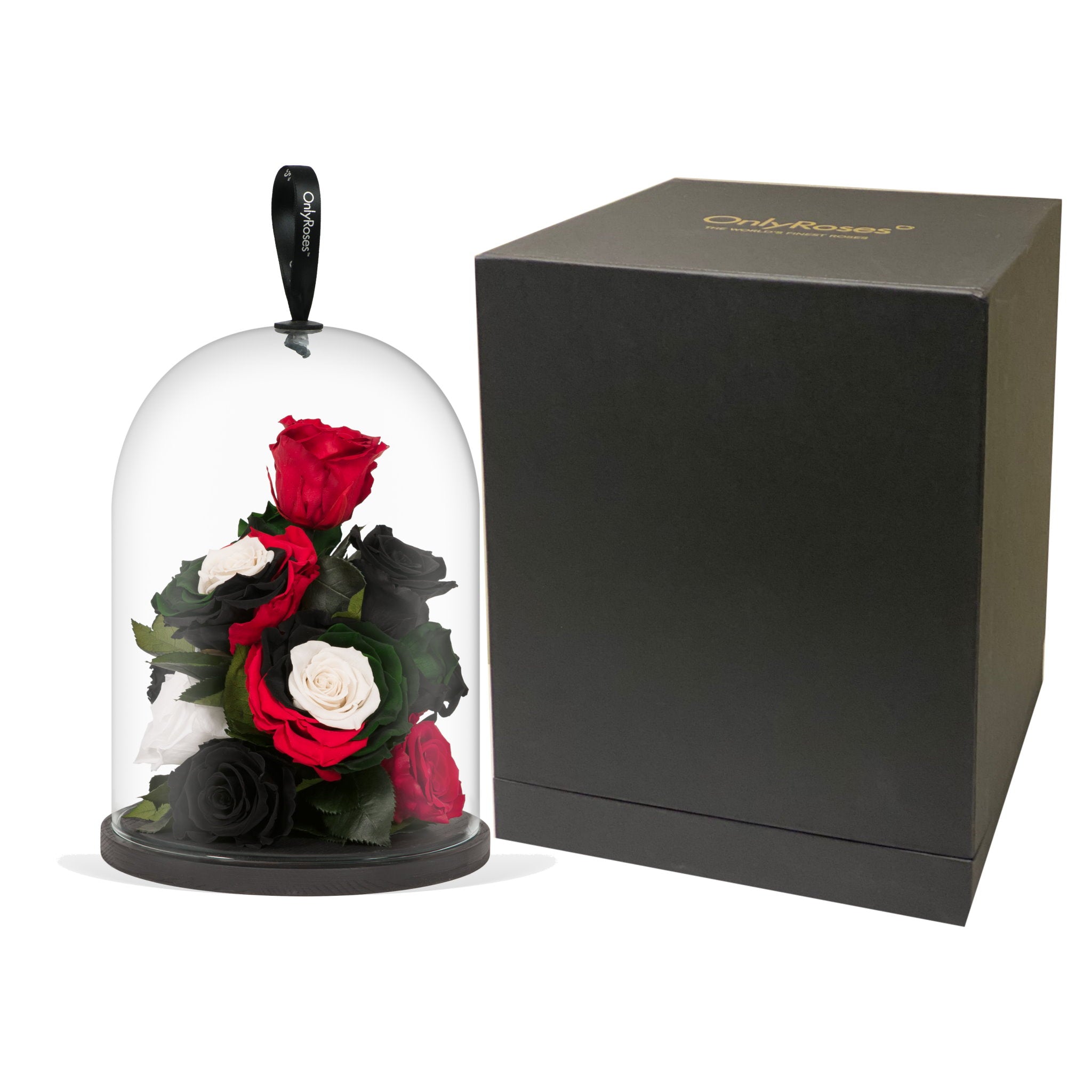 Infinite Roses beneath an exclusive OnlyRoses bell jar - hand-assembled to order for a refined, sculptural presence. Conjuring the romance of a Victorian tea room, Jewel adds character to a lacquered console, an antique bureau, or a curated library shelf.