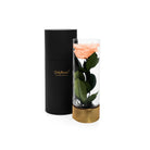A single long-stemmed Infinite Rose presented in a clear glass vase with a brass base and luxury presentation box - poised and timeless. Hand-crafted to order, Ebony is a graceful note for a dressing table, a writing desk, or a bedside pedestal.